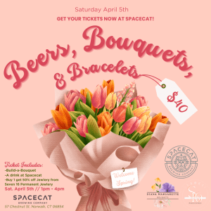 Spring is in the air, and we’re celebrating with flowers, friends, and fun at Spacecat Brewery in South Norwalk!