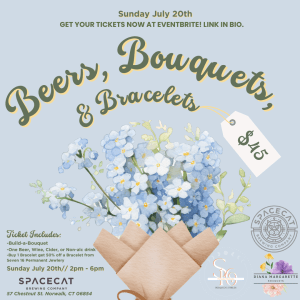 #BeersBouquetsBracelets #NorwalkEvents #CTThingsToDo #BuildABouquet #SpacecatBrewery #SummerInCT #GirlsDayOut #PermanentJewelry #CreativeEvents #WhiskerRoomVibes