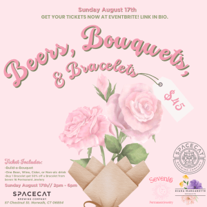 #BeersBouquetsBracelets #CTEvents #NorwalkCT #BuildABouquet #PermanentJewelry #GirlsDayOut #SpacecatBrewery #CreativeEvents #SummerInCT