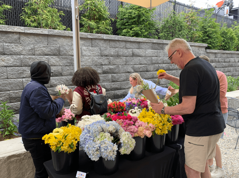 Choose 15-17 of your favorite flower stems. After arranging either yourself or with the help of a florist, we’ll wrap up your bouquet to take home and enjoy!